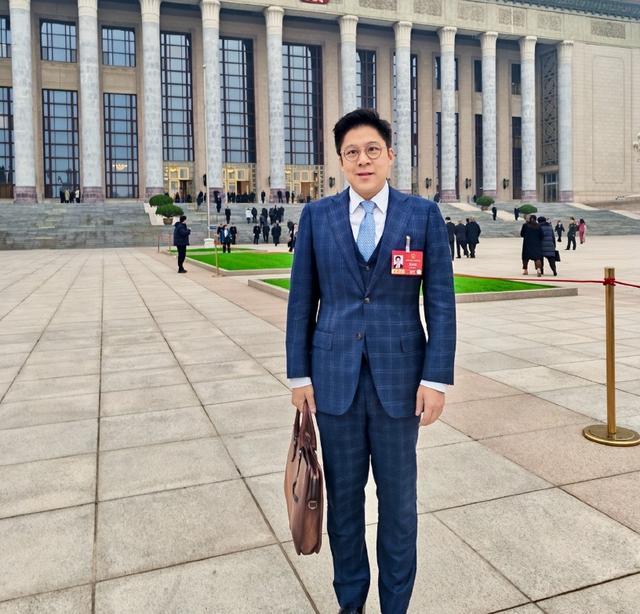 现场照片中,他身着简约西装、无任何奢侈品加持,手中紧攥厚实地履职资料,专注与工作人员沟通,语气谦逊,毫无豪门公子架子,活脱脱一个“奔走在履职路上的打工人”,瞬间打动无数网友。